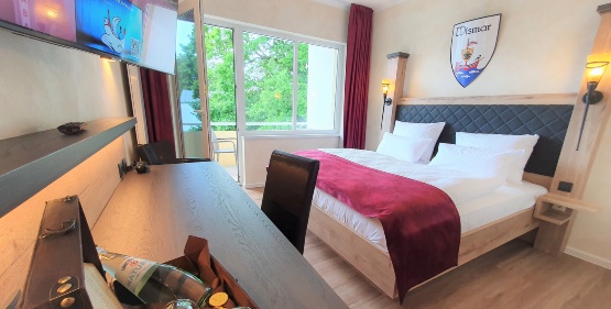 Alle Zimmer sind mit Einzelbetten (0,90m x 2,00m) oder Doppelbetten (1,60m bzw. 1,80m x 2,00m), Duschbad, Flachbild-TV und Telefon ausgestattet, WLAN ist in allen Bereichen kostenfrei.